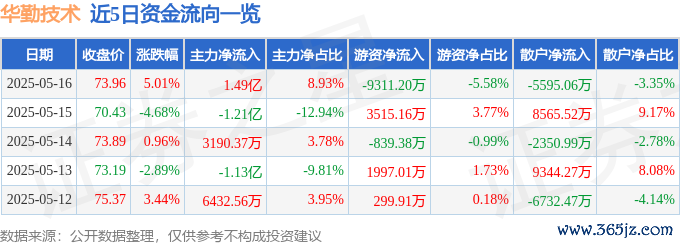 本站消息股票配资资讯,截至2025年5月16日收盘,华勤技术(603296)报收于73.96元,上涨5.01%,换手率3.99%,成交量22.8万手,成交额16.7亿元。